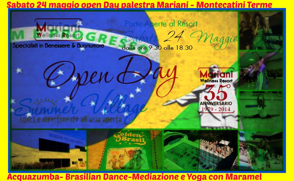 Sabato 24 Maggio grande festa alla palestra Mariani Wellness Resort a Pieve a Nievole - Via Tagliamento n.7 con Maramel direttamente dal Brasile Acqua-zumba, Brasilan-Dance, meditazione e yoga tutto con Maramel. Dopo Happy Hour e poi spettacolo con "Golden Brasil" EVENTO GRATUITO APERTO A TUTTI!!!!!!!!!!!!!!!!!!